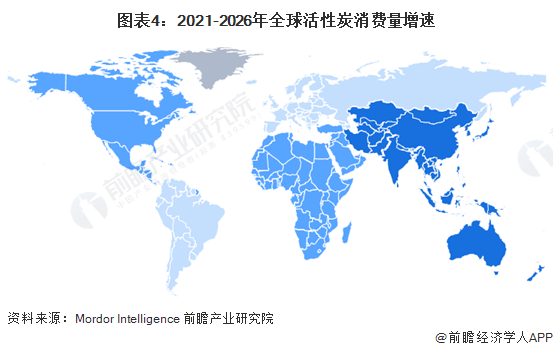 就我國(guó)情況來(lái)看,隨著工業(yè)部門(mén)對(duì)水的需求不斷增加,以及政府關(guān)于防止水污染和控制行動(dòng)計(jì)劃的法規(guī)不斷變化,都增加了我國(guó)對(duì)水處理活性炭的需求;同時(shí),近年來(lái)我國(guó)的食品飲料以及工業(yè)行業(yè)的市場(chǎng)規(guī)模不斷擴(kuò)大,也帶動(dòng)了活性炭需求量的不斷增長(zhǎng)。根據(jù)Mordor Intelligence數(shù)據(jù)預(yù)測(cè),預(yù)計(jì)在2021-2026年間,亞太地區(qū)將保持全球最高的的活性炭消費(fèi)量增速,其中我國(guó)活性炭消費(fèi)量增速將成為亞太地區(qū)整體高增的主要推動(dòng)力。